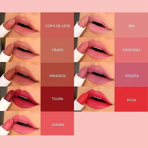 Modo de usar: Aplique o batom uniformemente sobre os lábios, começando pelo meio, indo sentido das laterais.