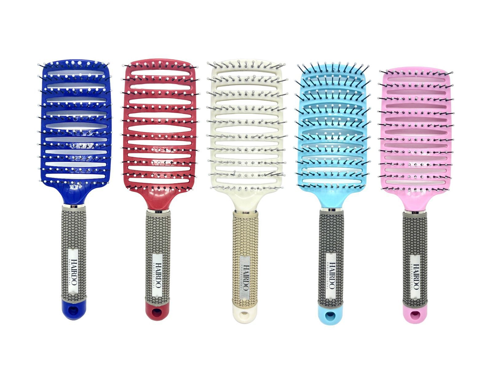 Produto desenvolvido para pentear a desembaraçar os cabelos. Possui formato curvado e vazado que abraça o couro cabeludo e agiliza a secagem dos fios e pontas arredondadas que o massageiam durante o penteado ou o desembaraçar. Seu cabo emborrachado auxilia e torna confortável o manuseio. Indicado para todos os tipos de cabelo.