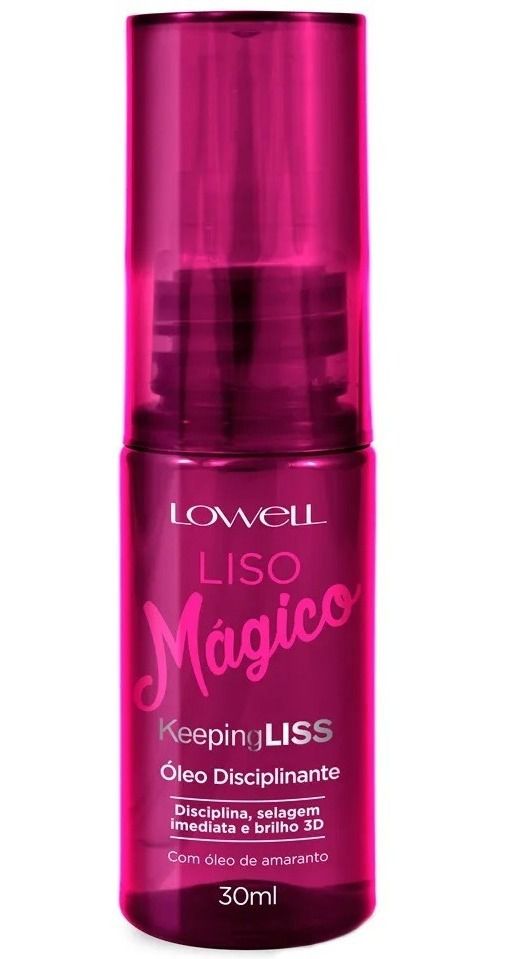 Óleo para todos os tipos de cabelo. Lowell Liso Mágico Keeping Liss protege os fios do frizz com a selagem das cutículas e brilho 3D.