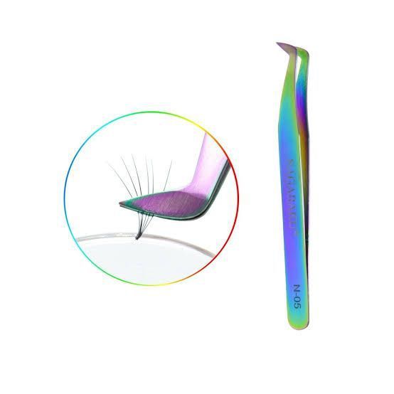 Pinça Nagaraku N-05 Volume russo projetada para técnicas de volume. Sua ponta é espessa e levemente inclinada em sua extensão, a zona de contato com o fio abrange toda parte dessa extensão, por essa razão recomendamos seu uso nos procedimentos de extensão de cílios na técnica de volume russo.