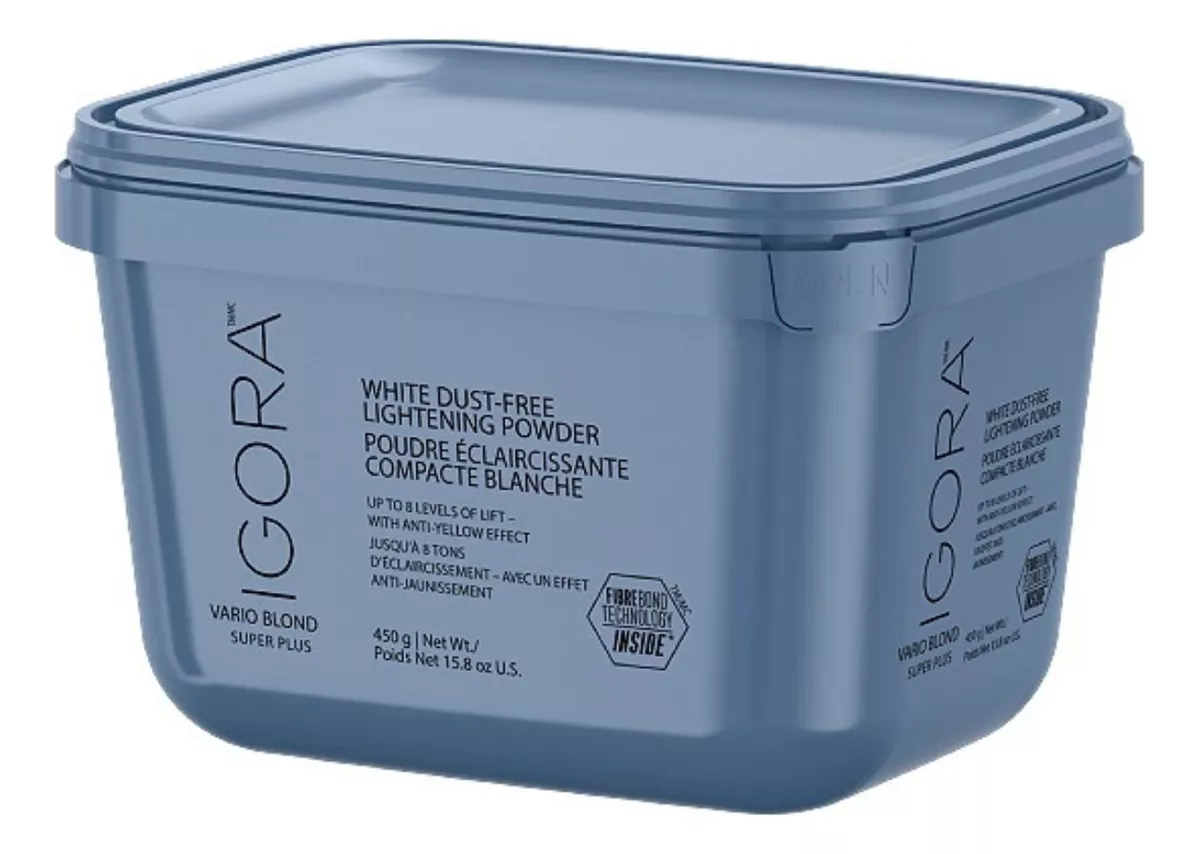 Igora Vario Blond Super Plus é um pó compacto descolorante que clareia até 8 tons e é ideal para fazer madeixas assim como outras técnicas de clareamento do cabelo. A descoloração Igora Vario Blond Super Plus deve ser misturada com o oxidante, se possível da mesma marca de Schwarzkopf em proporções conforme critério profissional dependendo da técnica de aclaração a ser feita.